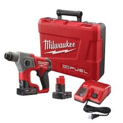The Milwaukee® M12™ FUEL™ 5/8 in SDS Plus rotary hammer kit provides upto 2X more run time upto 75" more speed and the largest SDS Plus bit capacity in its class. Milwaukee® has combined its exclusive PowerState™ brushless motor, REDLITHIUM™ battery pack and REDLINK™ Plus™ intelligence to deliver a 12 V rotary hammer that rivals compact 18 V tools on the market today. At only 10 in L and 3.9 lb, this tool provides performance and runtime that is comparable to a much larger tool, at a fraction of the size and weight. The electro pneumatic design allows for drilling of upto 5/8 in holes in concrete and masonry. For maximum versatility, regardless of application or orientation, the tool also features 2-mode operation, rotary hammer and hammer only.