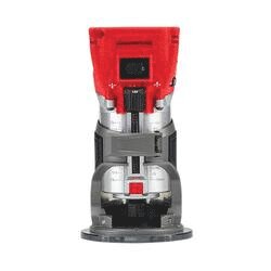 Our M18™ FUEL™ compact router combines power, speed and accurate depth adjustments to deliver clean accurate cuts in a variety of materials and applications. The compact router leverages our POWERSTATE™ brushless motor and REDLINK™ PLUS™ electronics. This delivers the power of corded 1.25 hp trim routers and best-in-class 31000 rpm providing you with power and speed for clean, quality cuts in hard materials. With Our M18™ REDLITHIUM™ XC5.0 battery, the cordless compact router cuts up to 250 ft of 3/8 in roundovers in red-oak, providing you with all day run time with fewer trips to the charger. The handheld router is equipped with a micro-adjust dial and macro-adjust button, providing you with fast and accurate depth adjustments for highly accurate work. A variable speed dial with speed from 10000 to 31000 rpm gives you control in all applications. The compact router also features a sturdy 4 in sub-base plate providing you with stability and dual-LED lights illuminate your work surface. the M18™ FUEL™ compact router is compatible with a plunge base and an offset base (sold separately).