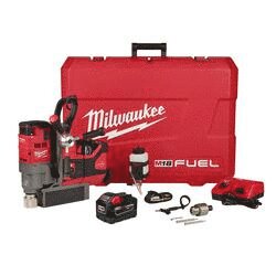 The M18™ Fuel™ 1-1/2 in magnetic drill drills faster than the number one corded competitor, delivers the strongest magnetic hold on 1/4 in steel providing a safer drilling environment in this material and drills upto (76) 13/16 in holes per charge. The M18™ Fuel™ 1-1/2 in magnetic drill delivers safer drilling on 1/4 in steel by providing the industry's strongest holding force on this material. By utilizing permanent magnets, the magnetic base operates without electricity, ensuring that the magnet does not deactivate if the battery is drained. Equipped with auto-stop lift-off detection, power to the motor is automatically cut if excess rotational motion is detected while drilling. Powered by a Milwaukee® POWERSTATE™ brushless motor, both drills are faster than their corded counterparts and deliver the same 1-1/2 in annular cutter capacity. REDLINK™ PLUS™ intelligence is the most advanced electronic system on the market, preventing damage to the tool and battery caused by overloading or overheating. The M18™ REDLITHIUM™ high DEMAND™ 9.0 battery pack delivers upto 5X more run time, 35% more power and runs 60% cooler than standard 18 V lithium-ion batteries. It maintains full power and runs substantially cooler through heavy applications, allowing users to push their cordless tools harder and longer than ever before. The M18™ REDLITHIUM™ high DEMAND™ 9.0 battery is fully compatible with 100+ M18™ tools.